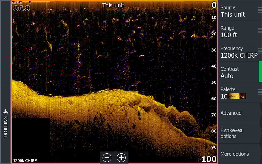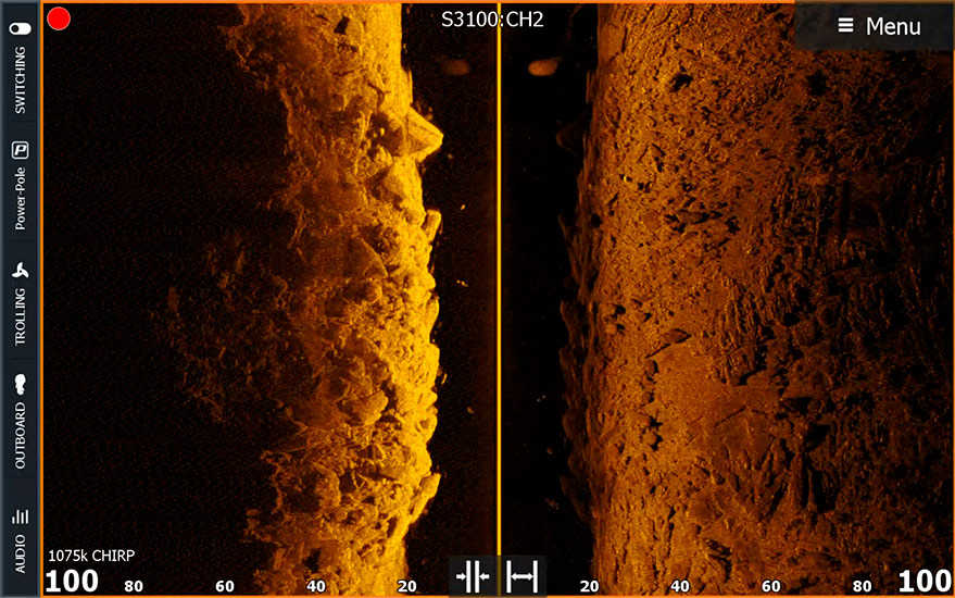 *требуется модуль эхолота S3100 и соответствующий датчик для Fish Reveal SideScan на HDS PRO
