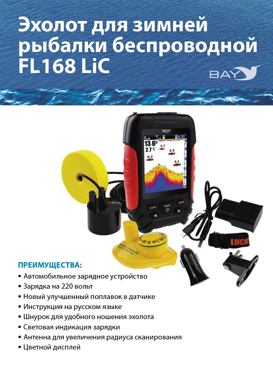 Беспроводной эхолот Lucky FL 168 LiC подходит для рыбалки с лодки, подледной рыбалки и береговой рыбалки. Если вы ищете подарок для своего мужа, отца, друга или любого рыболова, то вы нашли хороший подарок.