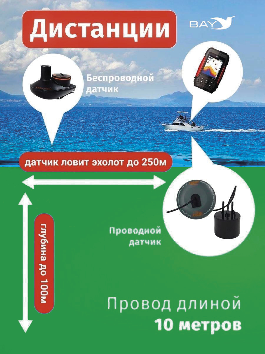 Рабочий диапазон гидролокатора: 100 м (беспроводной)