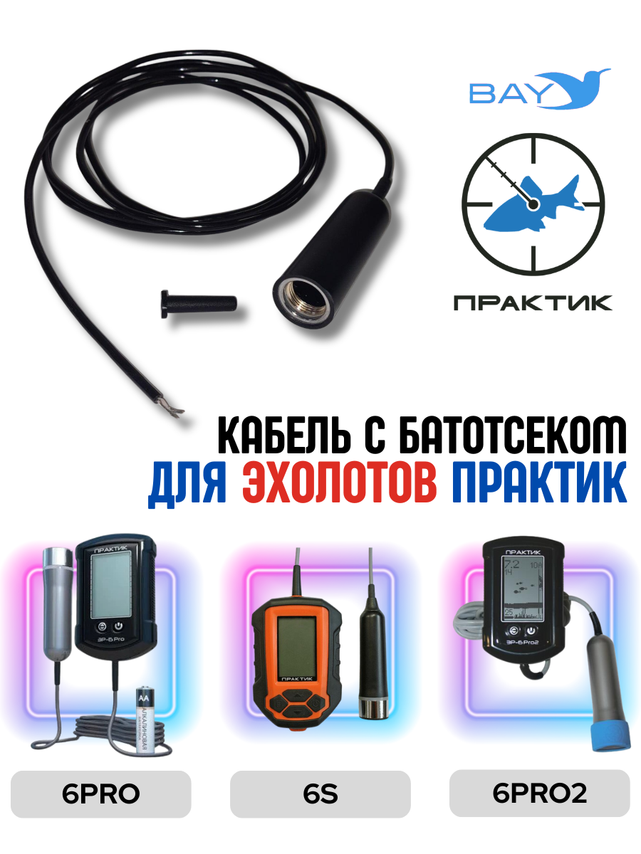 Кабель с батотсеком для эхолотов Практик 6S, Практик 6Pro , Практик 6Pro2. Поставляется в комплекте с кабельным вводом.
