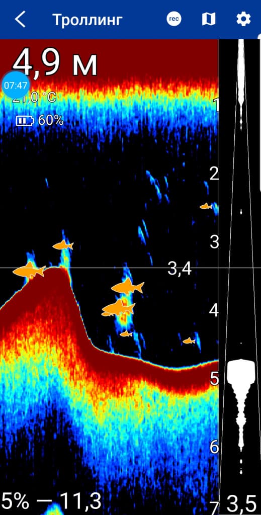 Индикация рыбы. Определение размера рыбы и глубины ее нахождения.