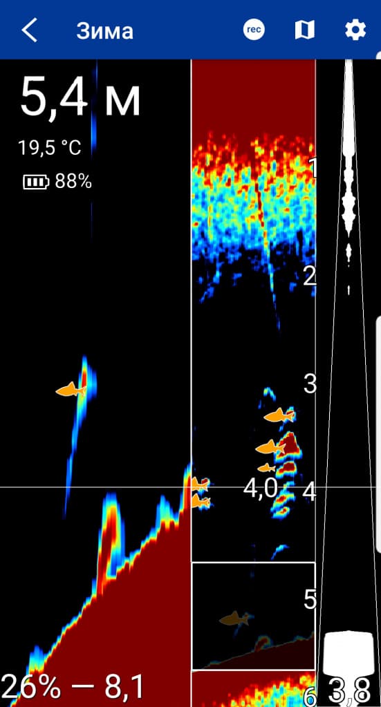 8. Индикация рыбы. Определение размера рыбы и глубины ее нахождения.