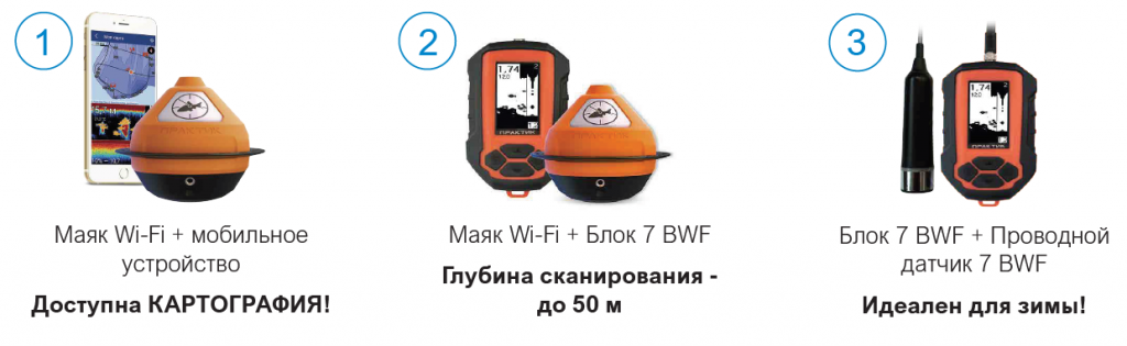 • Примечание: при использовании смартфона сначала необходимо установить на него соответствующее программное обеспечение - мобильное приложение «Эхолоты Практик 7».