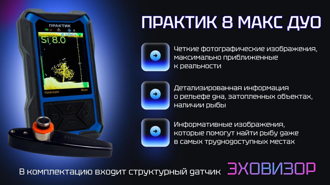 Универсальный комплект для всесезонной рыбалки, объединяющий базовый эхолот Практик 8 МАКС со структурным датчиком Эховизор. Конфигурация обеспечивает полноценную работу в зимний период и расширенные возможности для летней ловли с детализированным сканированием подводного пространства. Комплект предлагает профессиональные функции по оптимальной стоимости.