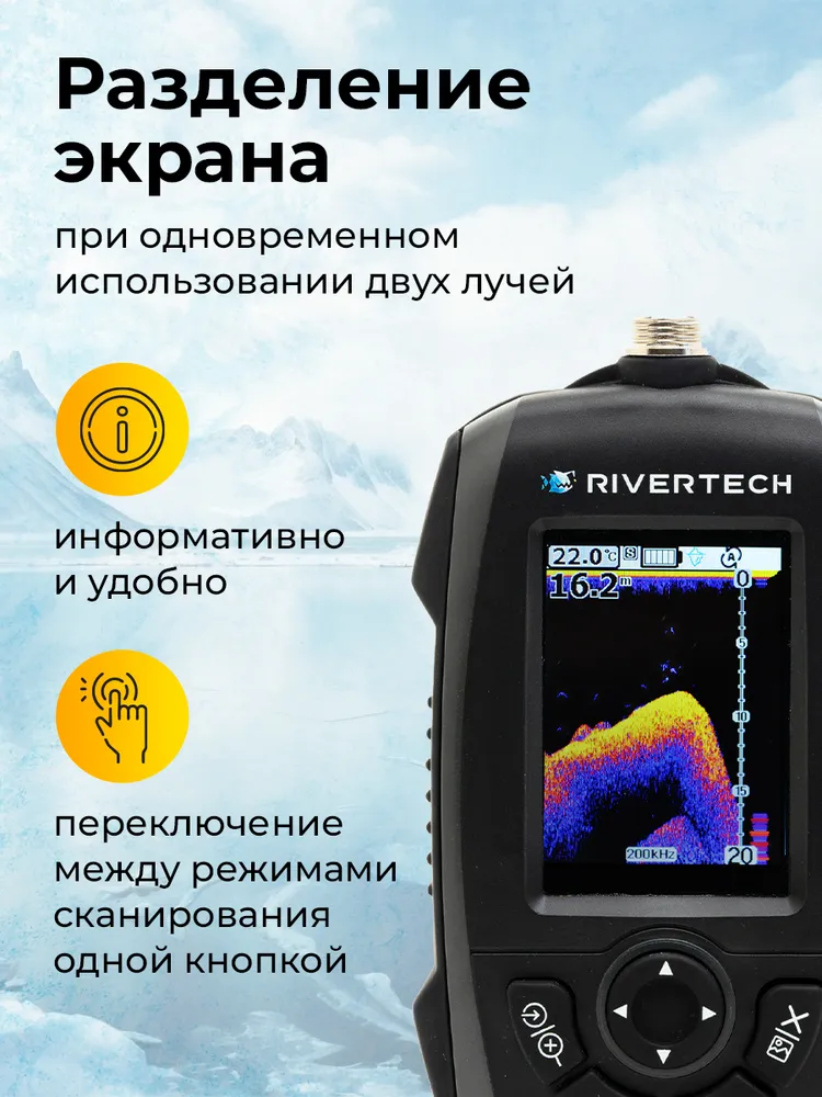 RIVERTECH 8.2 — это современный портативный эхолот для рыбалки, построенный на новой программной платформе и ориентированный на дальнейшее развитие функционала. Модель создана для тех, кто хочет получить не просто рабочий эхолот «на сегодня», а устройство с запасом возможностей на будущее.