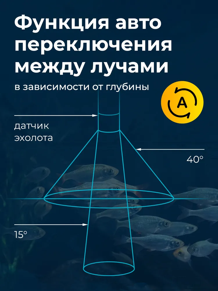 Диапазон глубин сканирования — от 0,6 до 75 метров, что делает устройство универсальным для разных типов водоёмов.