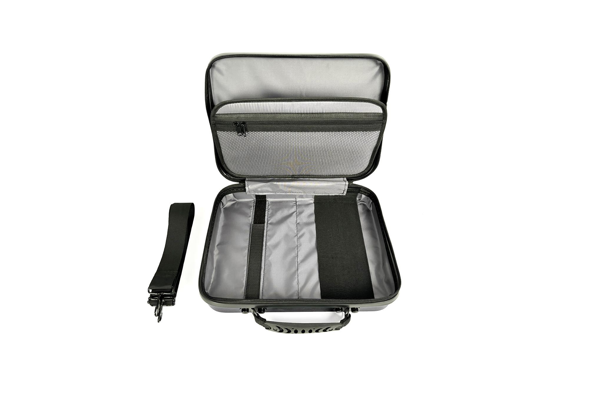 Кейс предназначен для перевозки и хранения ноутбука. Материал корпуса - ударопрочный пластик, внутренняя прокладка - текстиль и износостойкий поролон. Кейс надежно оберегает ноутбук от механических воздействий, не промокает, легко очищается от любой грязи. Отстегивающийся регулируемый плечевой ремень. Внутри кейса 2 отсека и 1 карман в которые помещаются комплектующие к ноутбуку: зарядный блок, компьютерная мышь и документы.