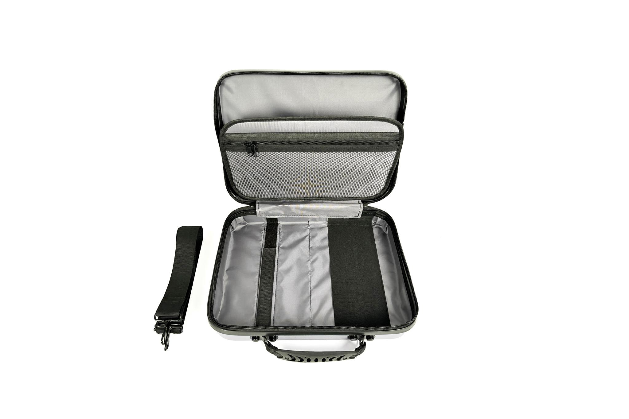 Кейс предназначен для перевозки и хранения ноутбука. Материал корпуса - ударопрочный пластик, внутренняя прокладка - текстиль и износостойкий поролон. Кейс надежно оберегает ноутбук от механических воздействий, не промокает, легко очищается от любой грязи. Отстегивающийся регулируемый плечевой ремень. Внутри кейса 2 отсека и 1 карман в которые помещаются комплектующие к ноутбуку: зарядный блок, компьютерная мышь и документы.