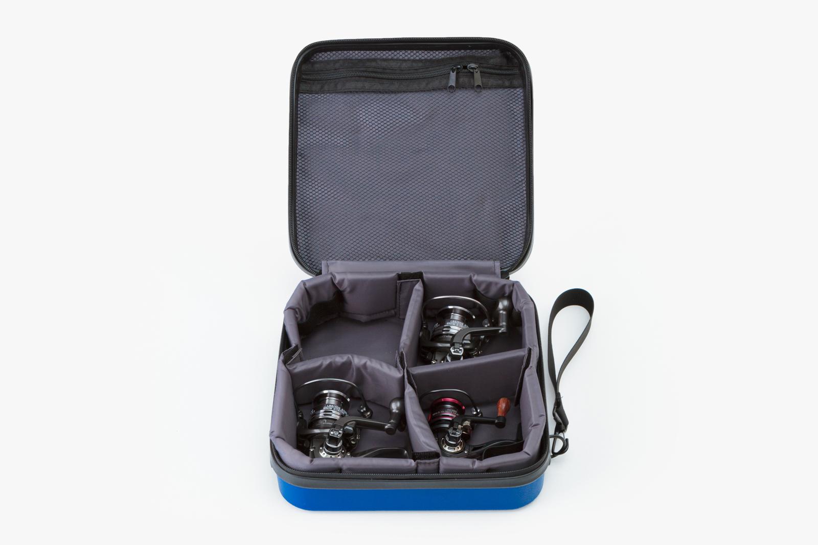 Кейс предназначен для перевозки и хранения четырех спиннинговых катушек.Есть возможность трансформации внутреннего пространства, в том числе в единый большой блок. Материал корпуса - ударопрочный пластик, внутренняя прокладка - текстиль и износостойкий поролон.Соединение двух половин корпуса происходит водостойкой прорезиненной молнией.Кейс надежно оберегает катушки от механических воздействий, не промокает, легко очищается от любой грязи.