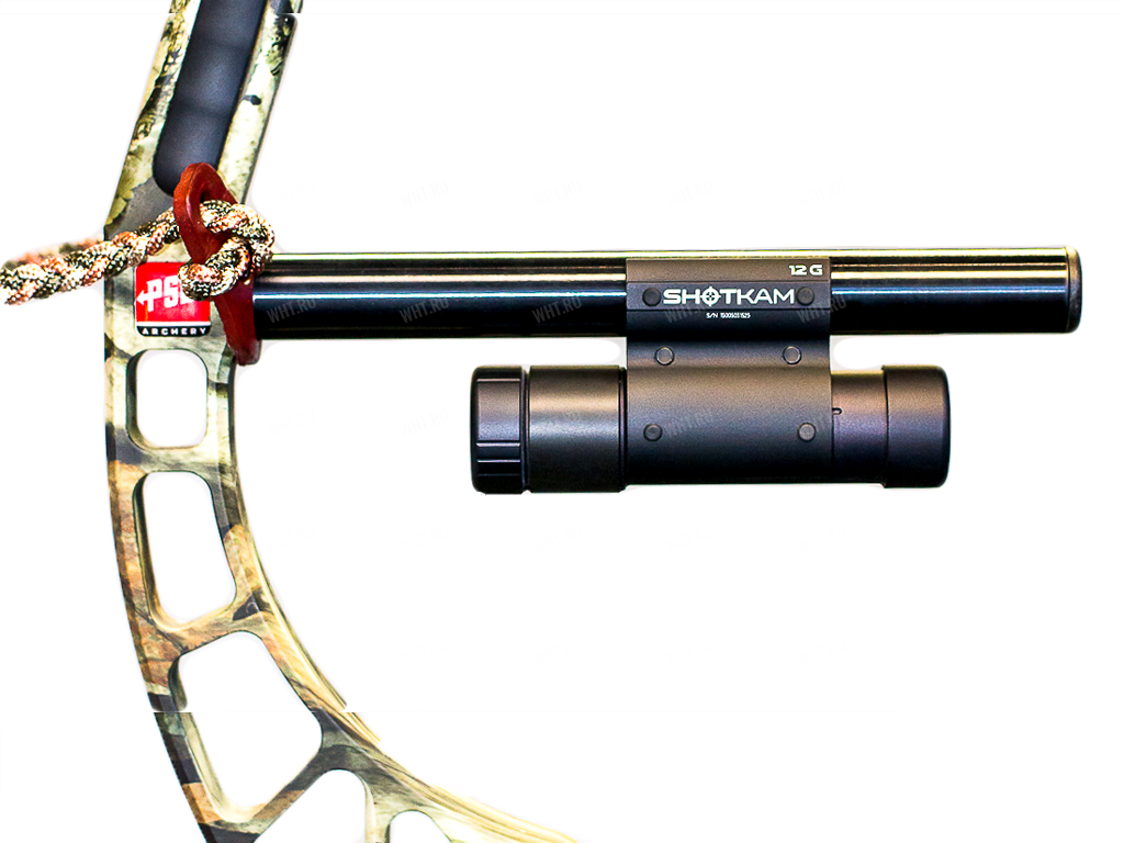 Кронштейн ставится на лук вместо стабилизатора. Камера фиксируется с помощью стандартного крепления для 12 калибра. Двигайте камеру вперед-назад для достижения оптимального баланса.