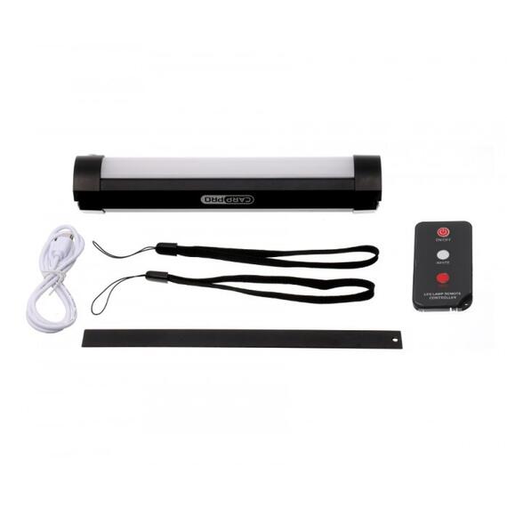 Carp Pro Bivvy Lamp IR — яркий и компактный LED фонарь, который станет незаменимым спутником рыболова, охотника и туриста. Фонарь имеет пыле- и влагозащищенную конструкцию, но предпочтительнее его использовать в закрытых помещениях. Предназначен для освещения платки или лесного домика (в режиме «Белый свет») или для подачи авариного сигнала SOS (в режиме «Красный свет»). Включение фонаря и переключение между режимами осуществляется двумя способами — с миниатюрного пульта ДУ и непосредственно кнопкой вкл/выкл на корпусе фонаря.Фонарь питается от встроенного Li-ion аккумулятора 3.7V/2000mAh, заряд которого осуществляется через герметично закрываемый порт micro USB. Во время заряда фонарь мигает красным цветом. Время заряда составляет до 5 часов при токе 1А от внешнего блока питания 5В (для этого подойдет ЗУ от любого смартфона). Цветовая температура — 5700K (белый свет). Корпус фонаря весьма прочен, выполнен из алюминия и оснащен магнитами. Имеет две складные, стальные петли, за которые фонарь можно легко подвесить. В комплект входит зарядный шнур USB, два нейлоновых ремешка для рук (один — для пульта ДУ) и вспомогательная, стальная пластина для магнитного крепления.Время автономной работы:Яркий белый — 9-10 чТусклый белый — 110-120 чЯркий красный — 6-7 чТусклый красный — 70-75 чХарактеристикиЦвет свечения — белый и красныйНастройки яркости по двойному нажатию кнопкиРежимы: 2 уровня белого + 2 уровня красного + красный строб SOSЗащищенная от влаги конструкция со встроенной перезаряжаемой литий-ионной батареейДальность действия пульта ДУ — от 7 до 14 мПростое кнопочное управлениеПорт зарядки — micro USBДве стальные петли, магнитное креплениеРазмеры — 203 мм x 39 мм x 38 ммВес — 148 г.