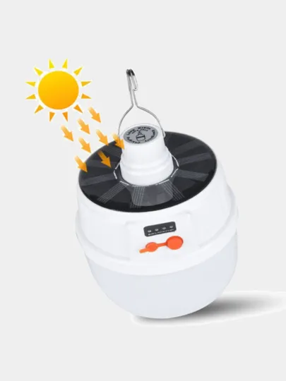Кемпинговая аккумуляторная лампа, заряжается через USB кабель и от солнечной панели.