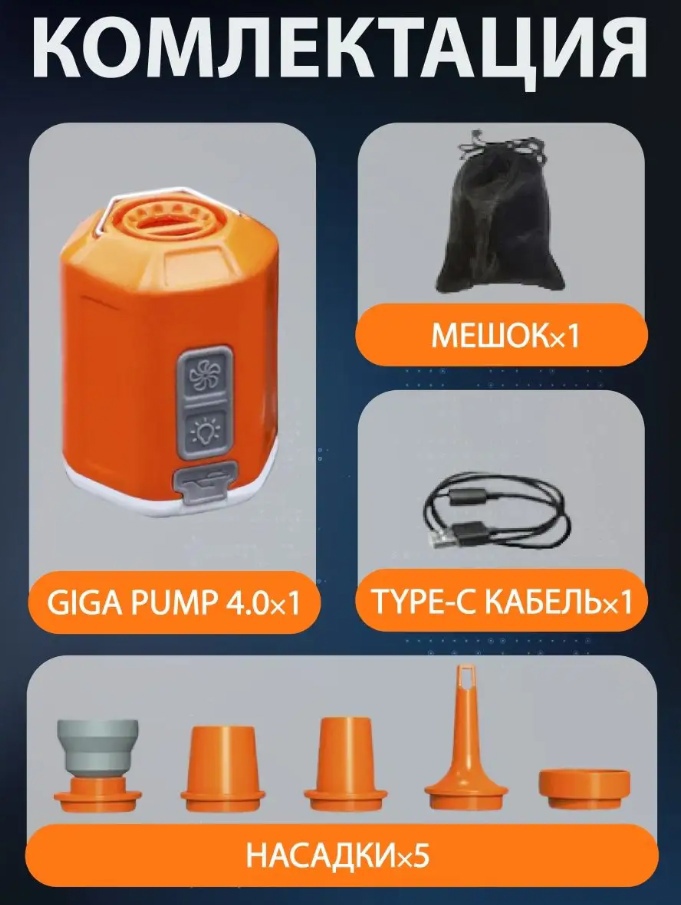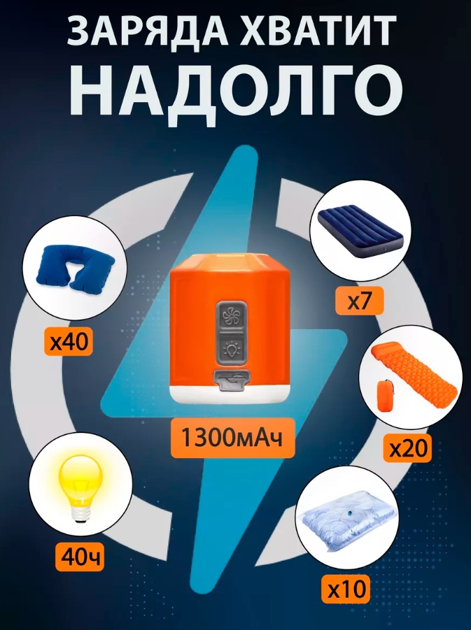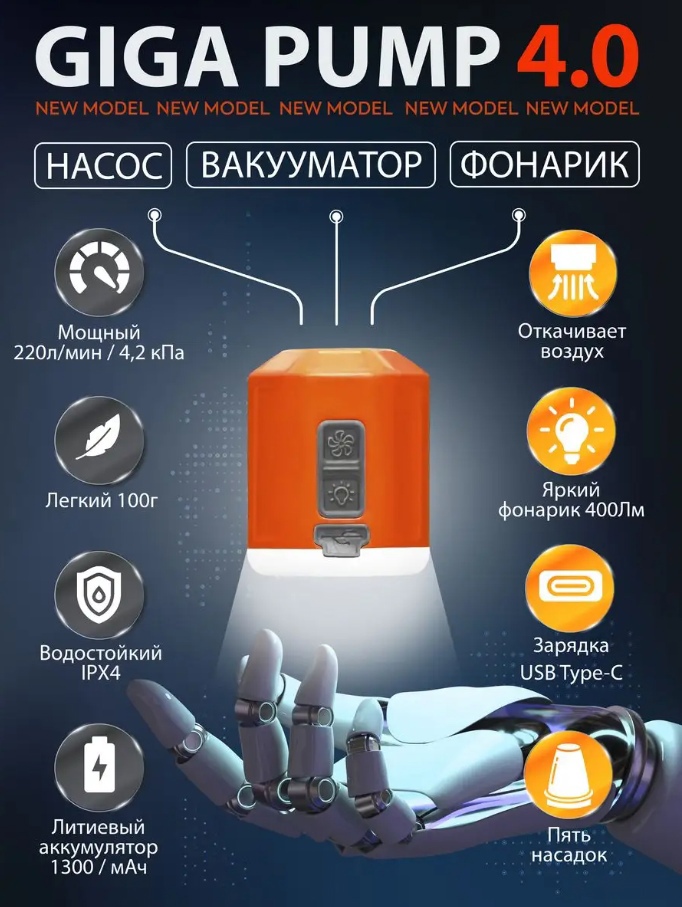 Насос аккумуляторный светодиодный для кемпинга + фонарик GIGA Pump 4.0