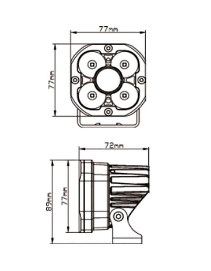 - Габаритные размеры фары: 77х72х89 мм.