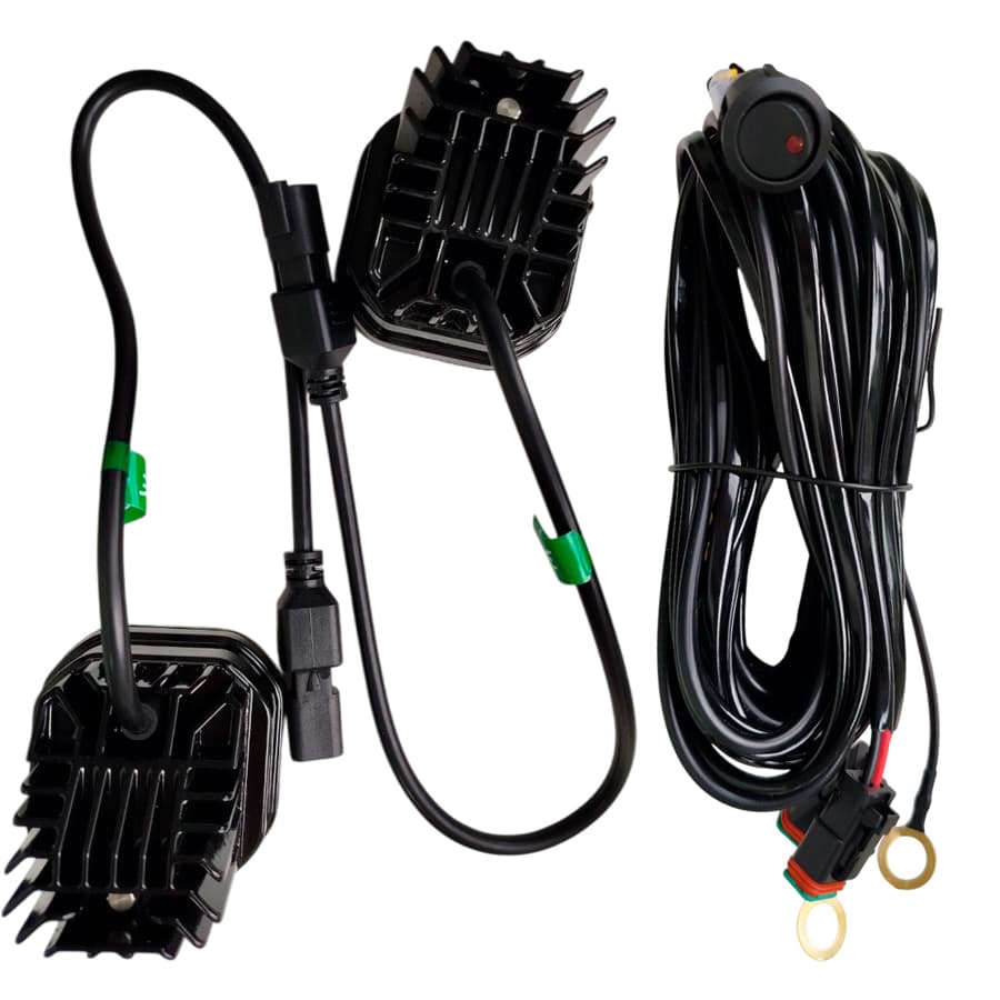 - В комплекте: 2 фары, кронштейн для крепления, набор крепежа, комплект кабелей для подключения.