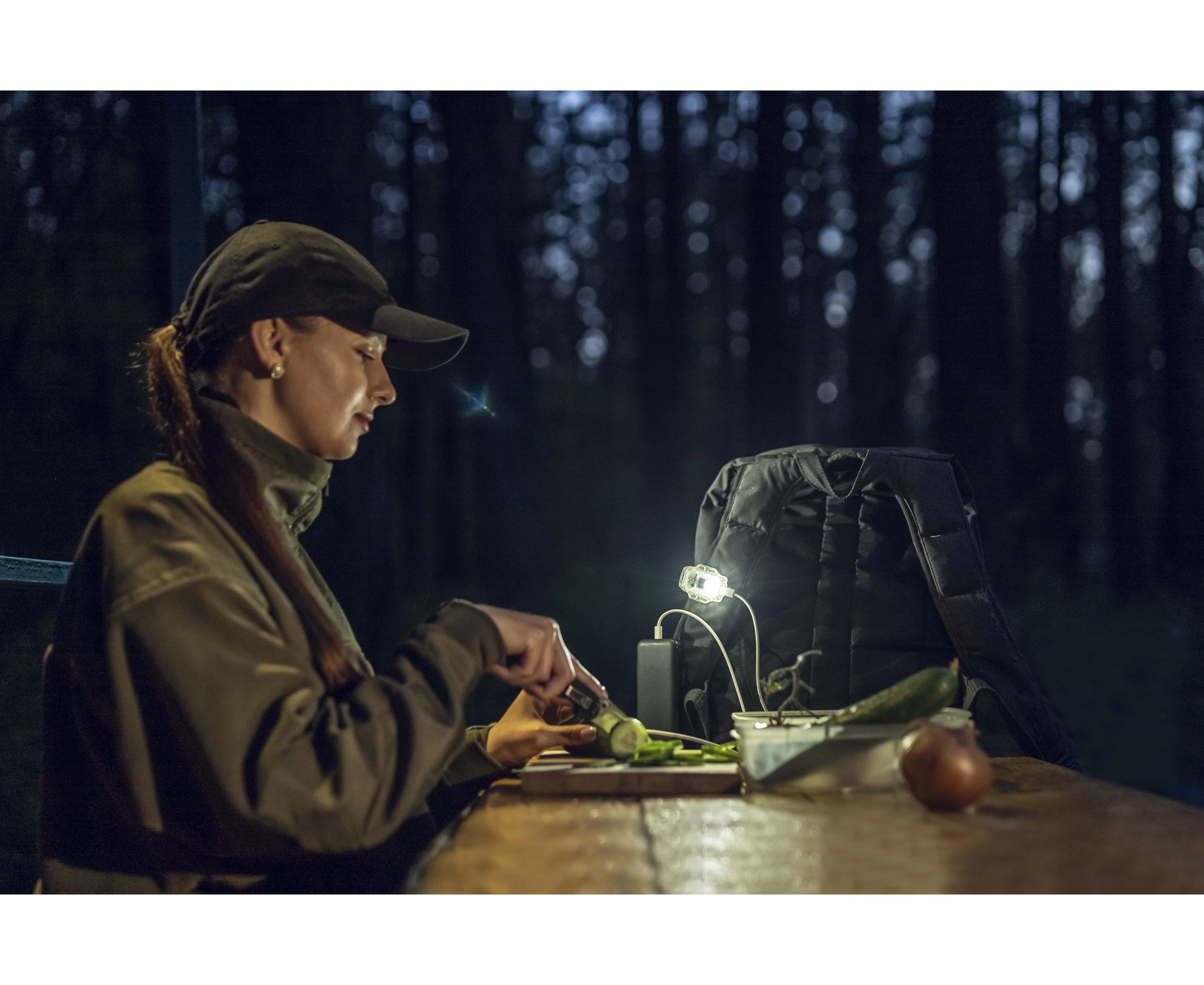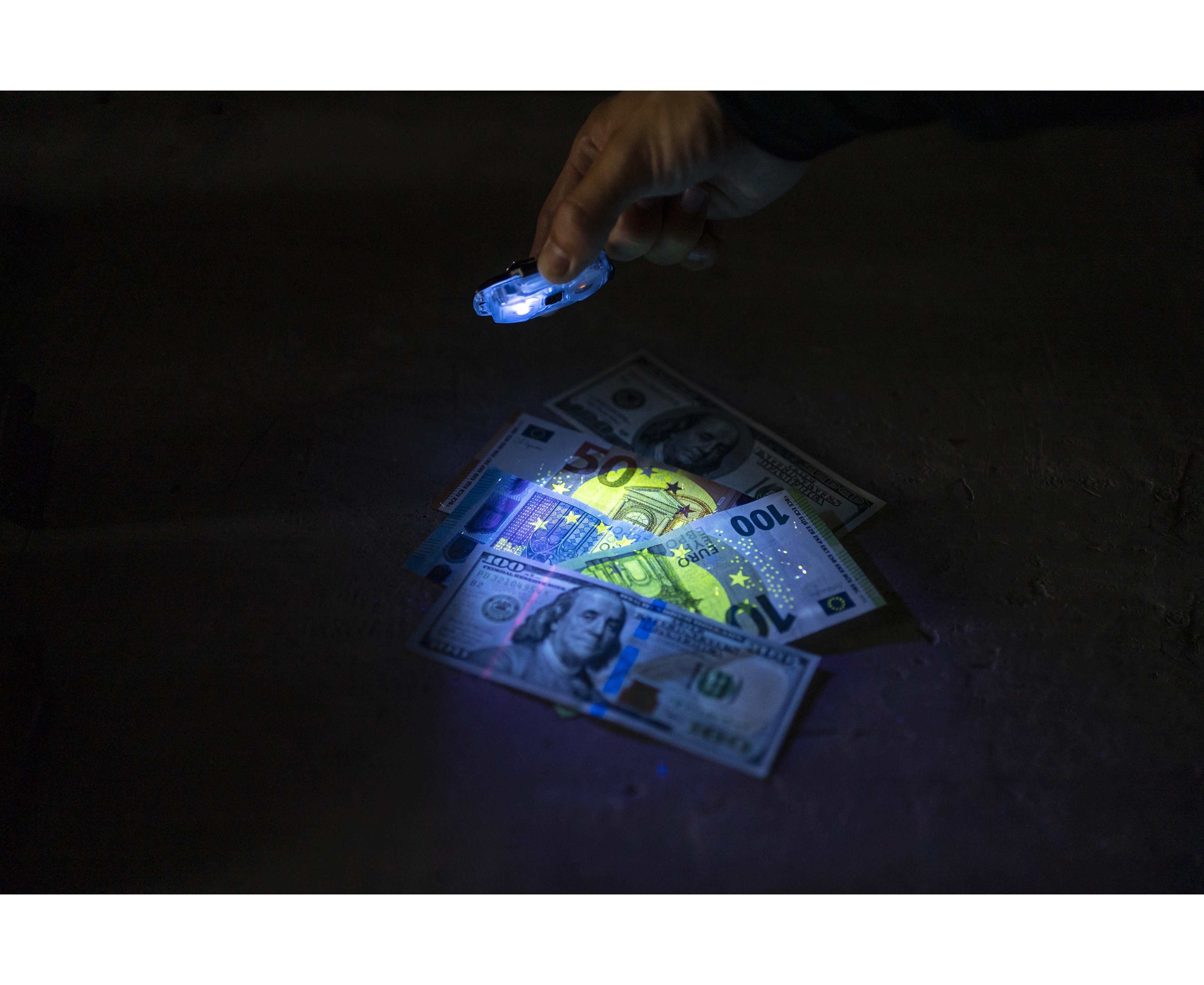 Фонарь с ультрафиолетовым светом и ярким корпусом, который легко заметить даже в темноте. Подходит для активного использования.