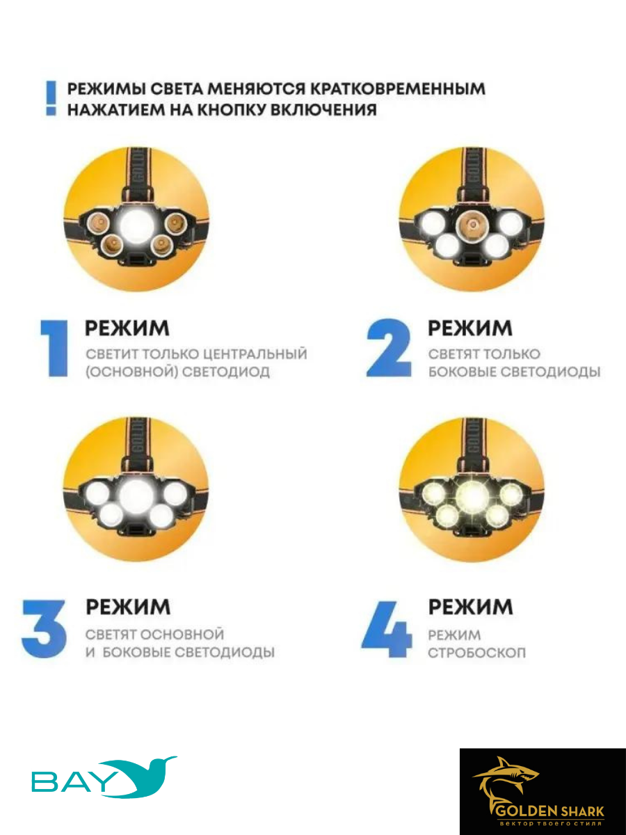 Налобный фонарик Golden Shark East - это удобный и функциональный аксессуар, который обеспечивает яркое и стабильное освещение в любых условиях. Он оснащен светодиодом Cree XM-L2, который обеспечивает яркий и равномерный световой поток. Фонарик имеет три режима работы: яркий, средний и экономичный, что позволяет выбрать оптимальный режим в зависимости от условий использования.