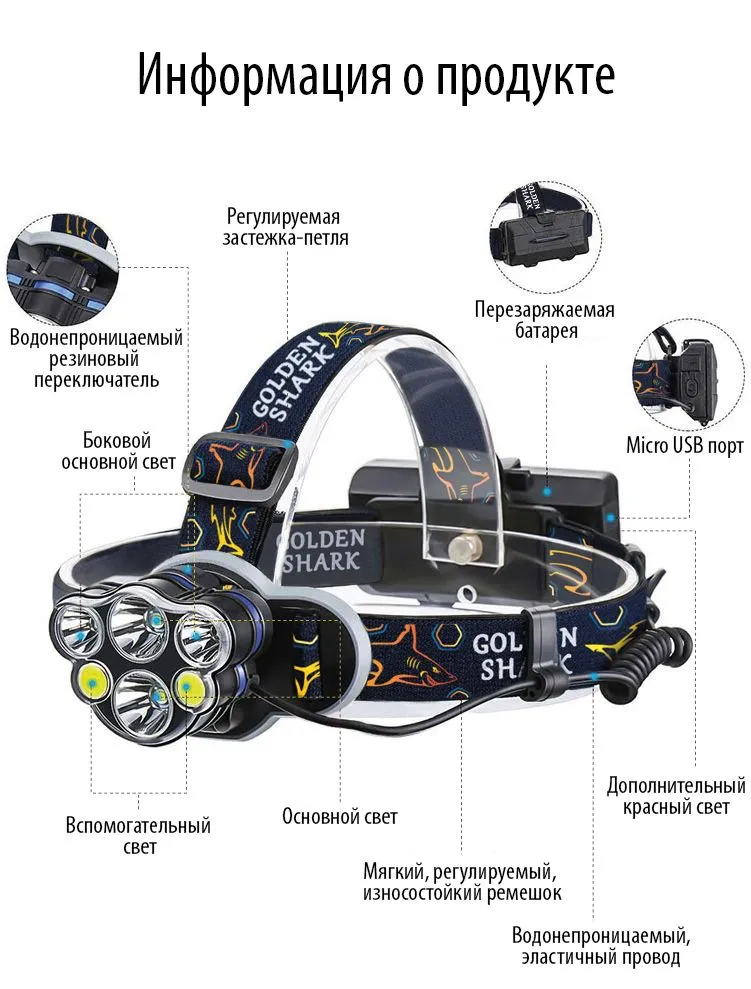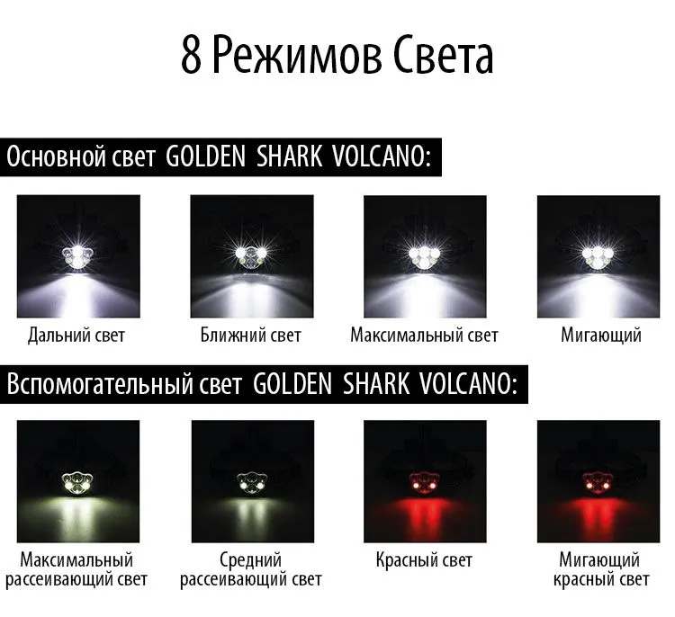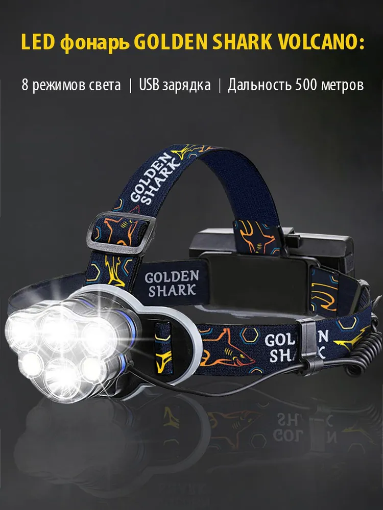 Налобный светодиодный фонарь VOLCANO от Golden Shark идеально подходит для спорта и туристического похода. Отличный помощник в темное время суток на рыбалке и охоте. Пригодится в бытовых целях, на даче или в гараже.