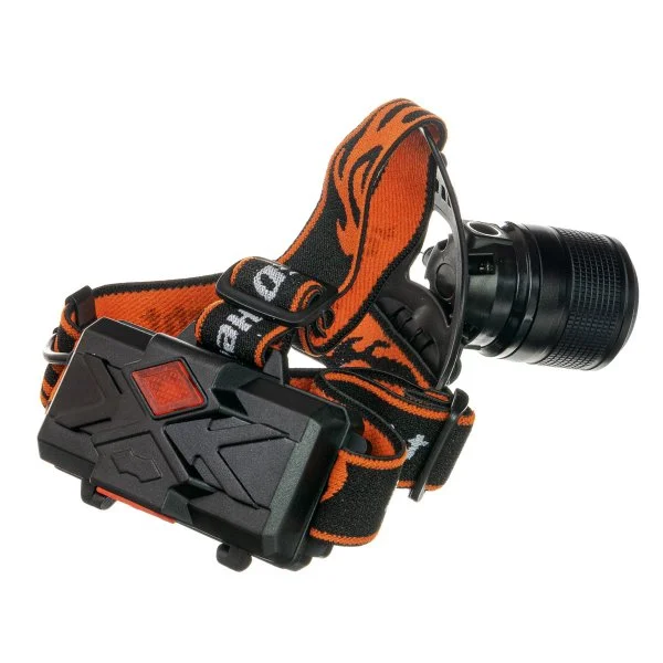 Фонарь оборудован ярким LED-светодиодом и отражателем для формирования стабильного светового пучка. Модель имеет регулируемый угол наклона головного блока, что позволяет направлять свет в нужную точку без изменения положения головы или тела.