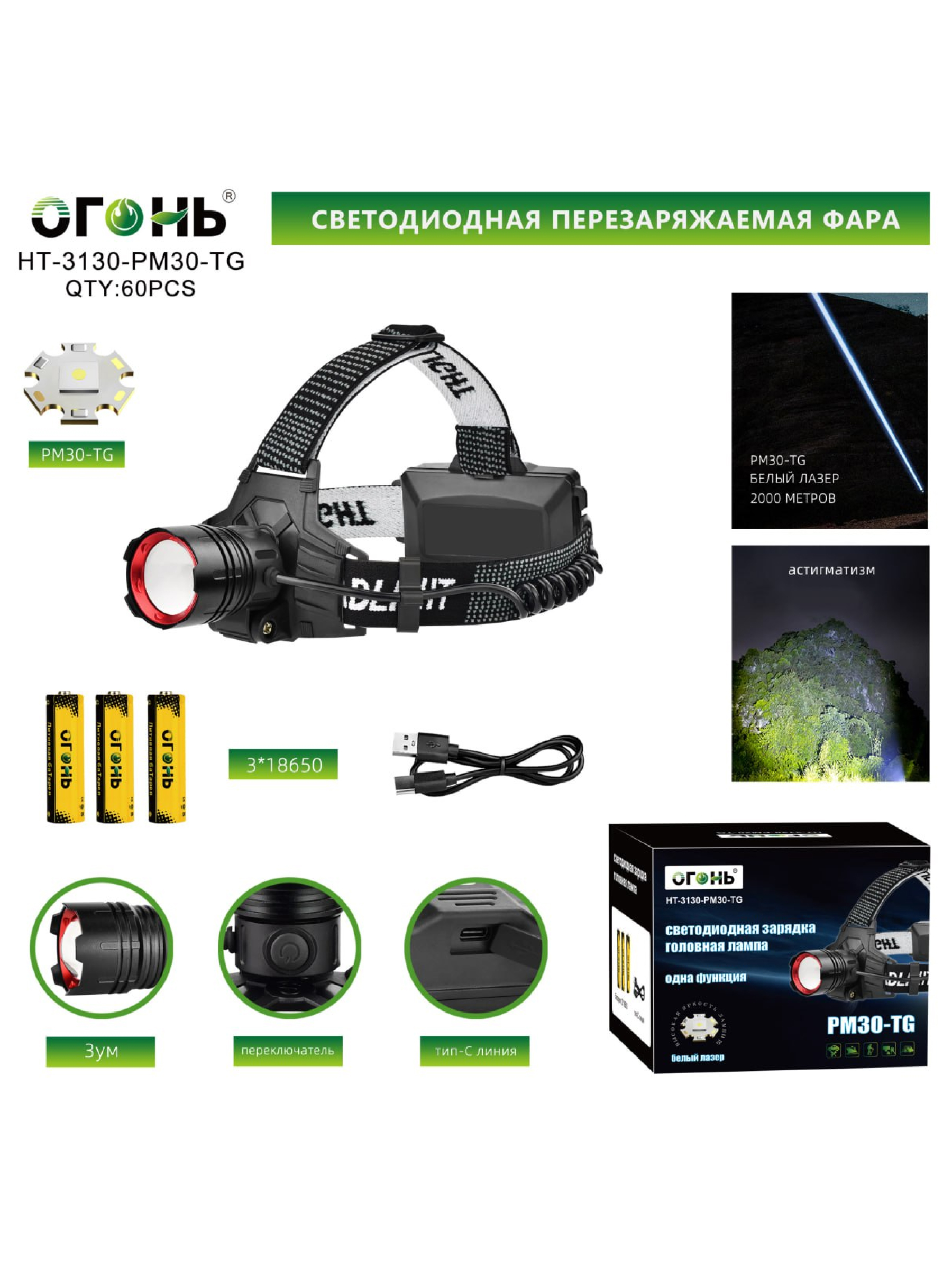 Светодиодный налобный фонарь HT-3130-PM30-TG представляет собой мощный и универсальный источник света для активного отдыха и повседневных задач. Он оснащён современным светодиодом PM30-TG, который обеспечивает яркое и стабильное освещение с хорошей дальностью и эффективной работой в различных условиях. Светодиод PM30-TG широко применяется в фонарях, где требуется высокий уровень светового потока и надёжность работы.