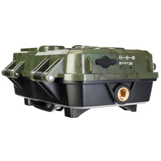Фотоловушку можно спокойно размещать на улице в любое время года: она защищена от пыли и мощных струй воды и стабильно работает на жаре и морозе. В комплекте есть штатив и набор креплений для фиксирования фотоловушки на дереве или стене. Питание камеры – 4 батарейки типа АА (нет в комплекте) или внешний источник.