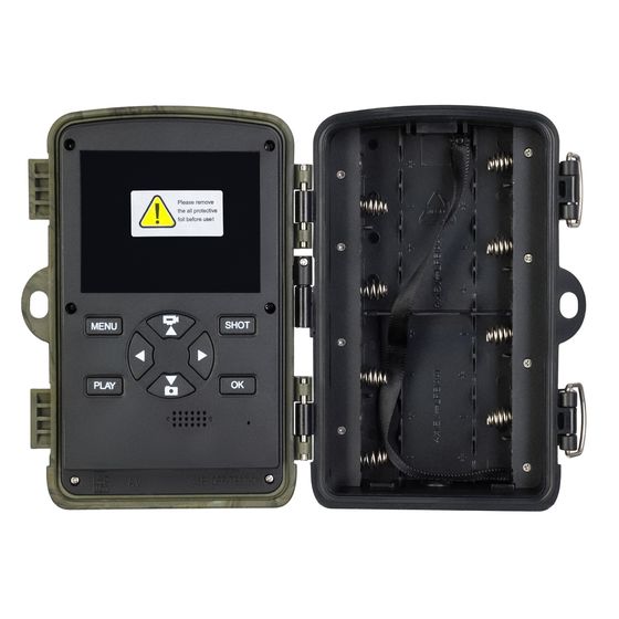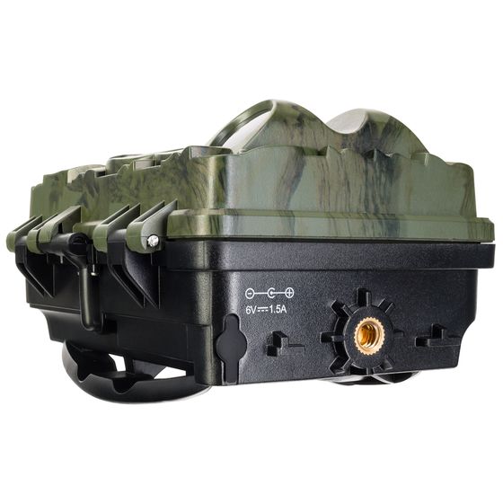 Камера работает на батарейках типа АА или от внешнего источника питания. У нее широкий диапазон рабочих температур (от −20 до +50 °С), а корпус защищен от водных брызг, поэтому ловушка подойдет для установки в любое время года. Ее можно зафиксировать на дереве или стене при помощи комплектных креплений и штатива.