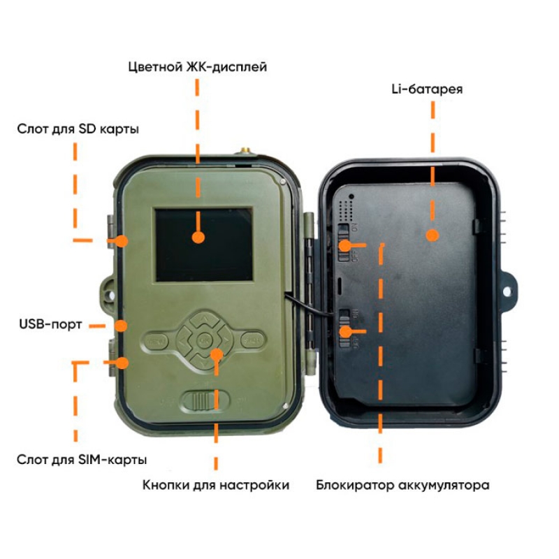 Фотоловушка Филин HC 940 LTE Pro 4K – это улучшенная версия фотоловушки HC900Pro с возможностью удаленного просмотра фотографий и видеороликов через приложение SuntekCam для смартфонов. Камера оснащена чувствительным датчиком движения, который моментально реагирует на появление движущегося объекта в зоне контроля с последующим фотографированием или стартом записи видео. Записанные материалы сохраняются на универсальной карте памяти формата microSD либо на удаленном облачном хранилище, которое предоставляется производителем абсолютно бесплатно! Принцип работы фотоловушки заключается в сохранении фото или видеозаписи по срабатыванию датчика движения, а также в автоматической отправке полученных фото пользователю через мобильное приложение. Благодаря простому меню на русском и широким возможностям по настройке, устройство можно подогнать под практически любые нужды! Максимальное разрешение для видео – 4K 2160р с частотой 30 fps, а для фото – 36 мегапикселей (что гораздо больше, чем у предыдущей модели HC900Pro). Все фото и видеофайлы можно легко посмотреть на встроенном 2" дюймовом ЖК экране. Для хранения файлов используются карты памяти формата microSD объёмом до 265 гигабайт (в комплект не входит). Устройство обладает умеренным потреблением энергии, а благодаря встроенному литиевому аккумулятору на 8 000 mAh время стабильной работы было значительно увеличено! Диапазон рабочих температур составляет от -40 до +70 градусов, однако для работы на морозе стоит позаботиться о приобретении специальных элементов питания - поэтому советуем заранее купить солнечную батарею SP - 06. В штатном рабочем положении экран и внешние органы управления прячутся под защитной крышкой, потому что фотоловушка HC940PRO, специально разработанная для применения в условиях дикой природы, имеет надёжную защиту от погодных факторов, в том числе и от воздействия отрицательной температуры - корпус изготовлен в соответствии с защитным классом IP65, так что устройство не боится пыли, брызг воды и грязи. Оснащённая качественным PIR-датчиком на 90º и широкоугольной камерой с обзором по горизонтали в 120º, фотоловушка способна снимать фото и видео в ночном режиме с инфракрасной подсветкой на дистанции до 20 метров. В отличие от других фотоловушек, здесь предустановлено 56 шт. 940нм инфракрасных невидимых светодиодов, которые позволяют получать гораздо лучшее качество изображения в темное время суток. Для работы понадобится всего лишь установить в устройство сим-карту 4G/3G телефонного оператора и карту памяти. ► Главной особенностью PRO-версии является возможность удаленно работать с фотоловушкой, где бы вы ни находились. Видео трансляции, фото- и видеосъемка, а также скачивание сделанных записей прямо на телефон - теперь всё это в вашем смартфоне! Вы можете просматривать отснятые фотоловушкой фотографии и видеозаписи удаленно, установив мобильное приложение SuntekCam для Android и iOs на свой смартфон.