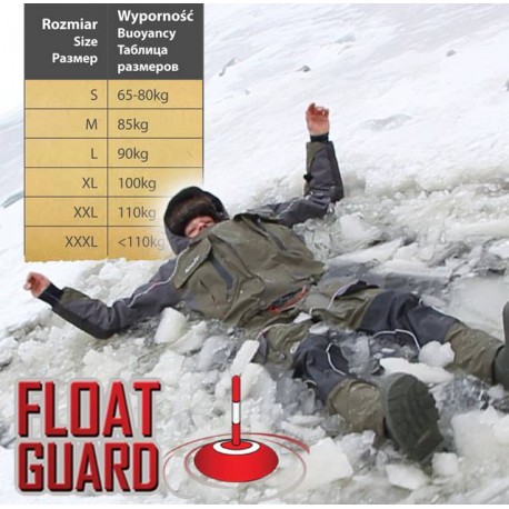 Выталкивающий, рыболовный костюм FLOAT GUARD предназначен для активных рыболовов, которые рыбачат даже в экстремальных условиях. Благодаря мембранной ткани Bratex с улучшенными параметрами паропроницаемости и водостойкости ( 8000 мм H2O/8000g/m2/24h), обеспечивается тепловой комфорт, защита от дождя, снега и ветра. Кроме того, верхний слой одежды покрыт оболочкой DRY CARE, таким образом, что она становится более устойчивой к грязи и влаге. Максимальную функциональность костюму придает продуманная система размещения карманов для рыболовных аксессуаров. FLOAT GUARD обладает уникальным выталкивающим свойством в воде, благодаря многослойному пенополиуретану, который дает возможность использования его в чрезвычайных ситуациях на воде. Структура пены - это миллионы пузырьков, которые соединяют свободные районы теплого воздуха для защиты от холода, уменьшая риск гипотермии. Кроме того, для повышения безопасности пользователей вовремя пути на рыбалку, костюм имеет светоотражающие элементы.