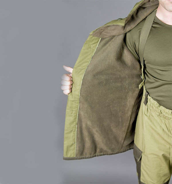Костюм Горка 3 утеплен флисовой тканью и синтепоном на куртке, штанах. Отлично сохраняет тепло, отводит влагу от тела (работает так же как термобелье). Флис на куртке не отстегивающийся, утеплены рукава, брюки.