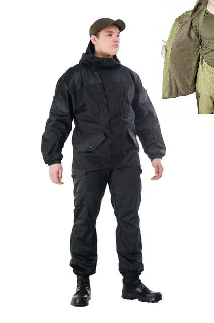 Костюм Горка 5 Черная на флисовой подкладке хорошо сохраняет тепло, ветрозащитный, отлично "дышит" и быстро сохнет. Отличный вариант камуфляжа для зимней охоты, рыбалки, страйкбола и туризма.