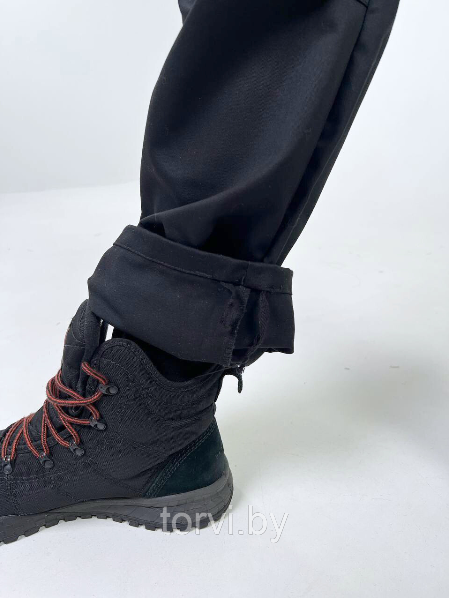 Шнурок-утяжка по низу брюк, что позволяет носить брюки поверх, так и внутрь обуви.