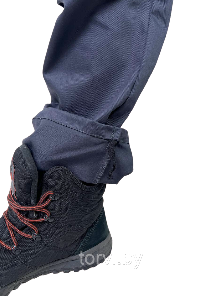 Шнурок-утяжка по низу брюк, что позволяет носить брюки поверх, так и внутрь обуви.