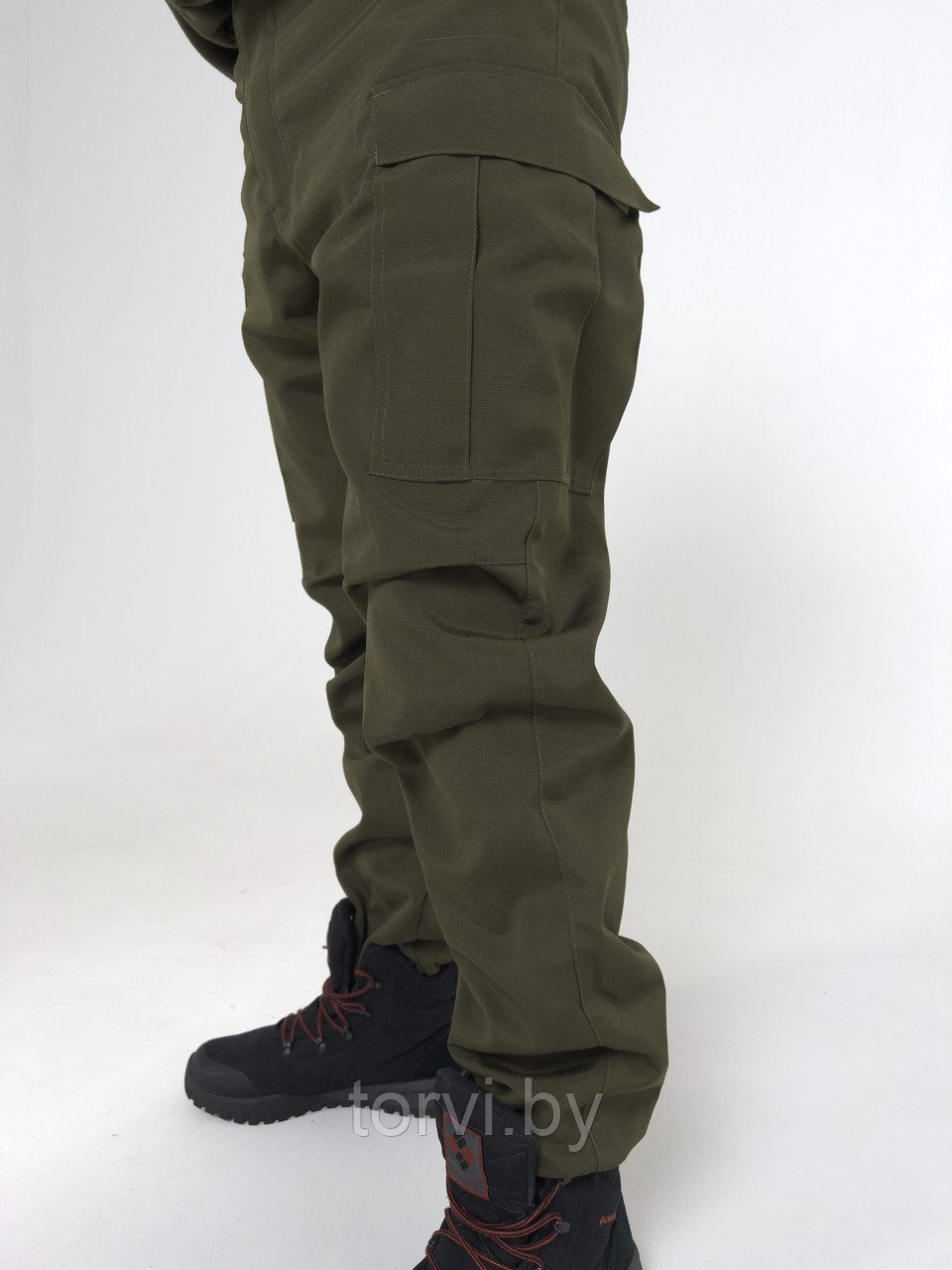 Прямой крой. "Ширинка" на молнии. Шлёвки для ремня. Усиление закрепками по всему изделию.