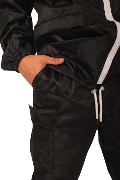 Куртка с центральной застёжкой на резиновой, влагозащитной молнии и внутренней притачной планкой для ветро-влагозащиты.
