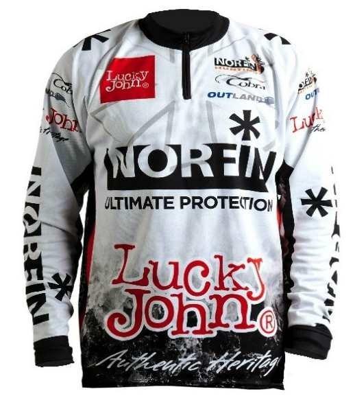 Футболка Norfin/Lucky John белая - спортивная футболка с длинными рукавами. Цвет белый, принты Norfin и Lucky john.