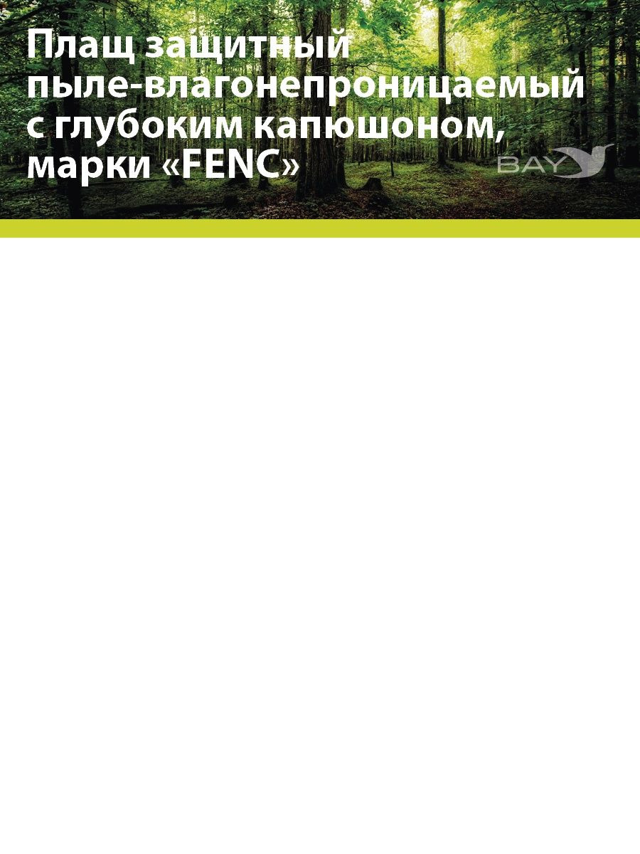 Плащ защитный, пыле-влагонепроницаемый с глубоким капюшоном, марки "FENC". Базовая модель. Глубокий капюшон с утяжкой шнурком на фиксаторах, с молнией, закрытой планкой, с накладными карманами на линии пояса по бокам.