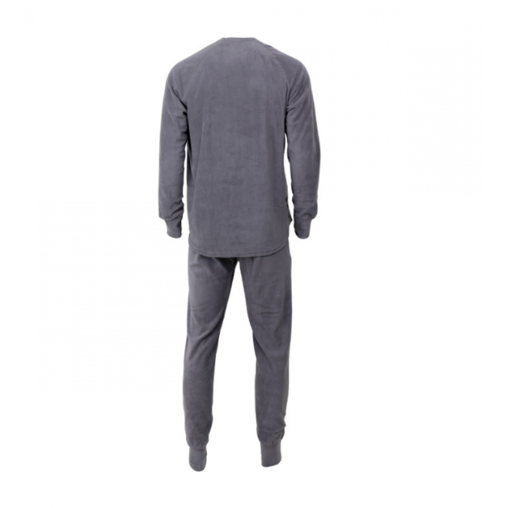 Двухслойное теплое термобелье серого цвета. Внутренний слой флиса выполнен из акрилового ворса. Он замечательно сохраняет тепло и выводит влагу от тела в верхний слой ткани.