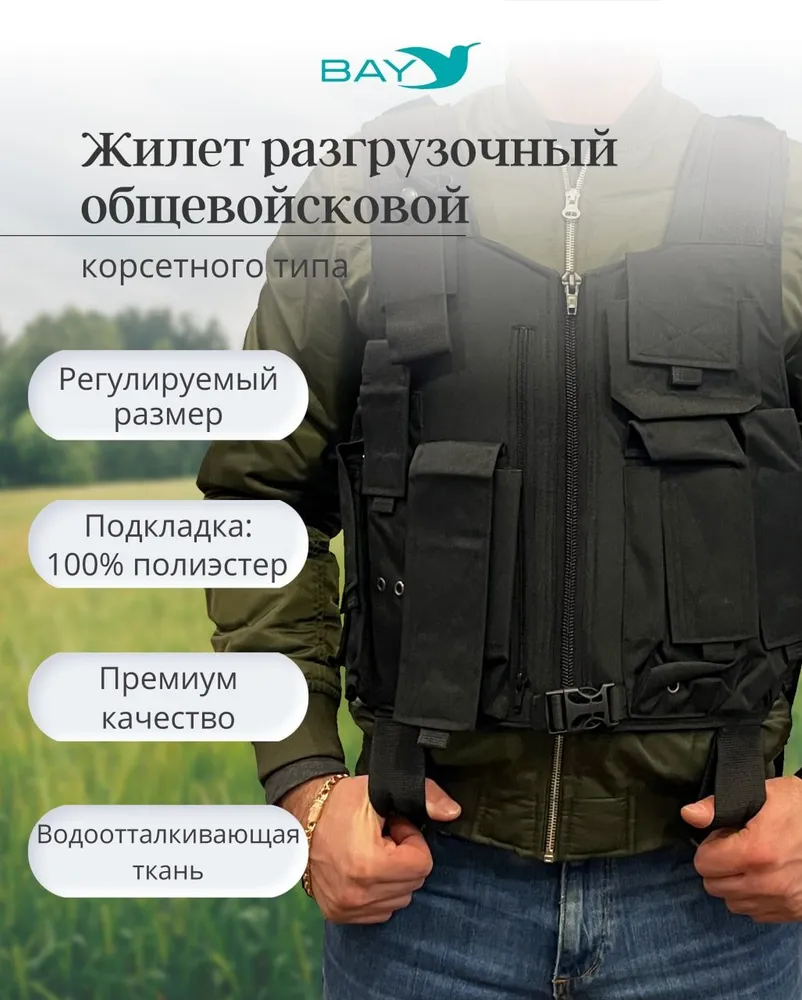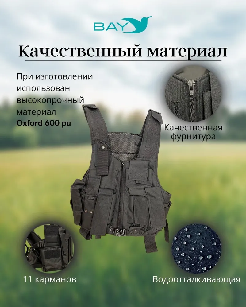 Жилет подойдет на любой сезон. Он состоит из двух половин, соединяющихся с помощью боковых нейлоновых строп и плечевых лямок. В специальном уходе не нуждается.