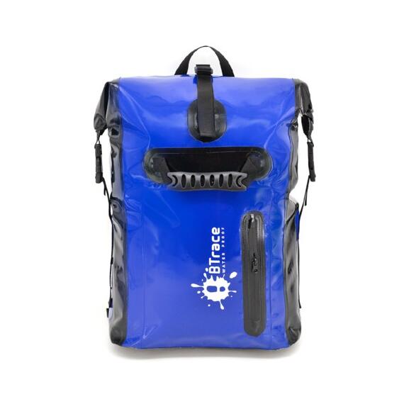 Выполнен из ПВХ на текстильной основе 0,63 мм, дно из литого ПВХ 630-650 гр. Спереди у рюкзака карман на влагозащитной молнии и удобная ручка.