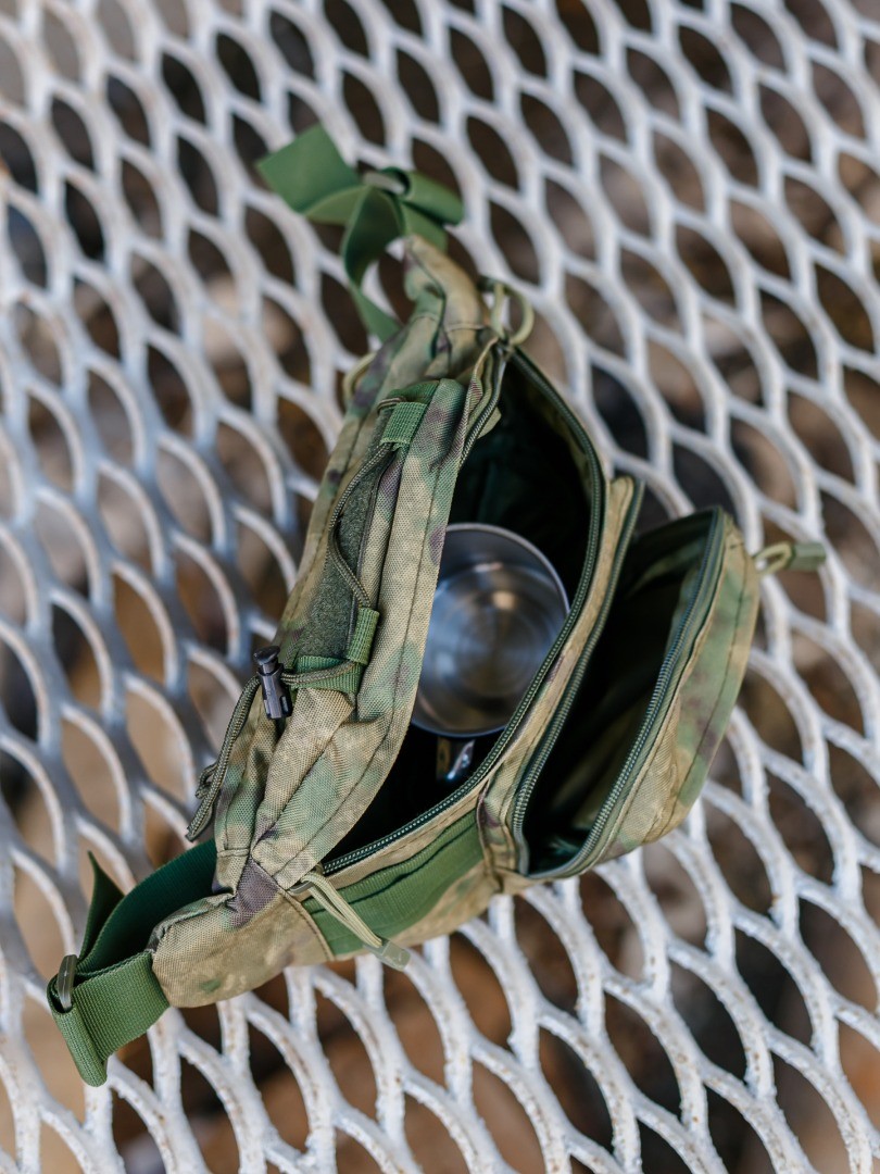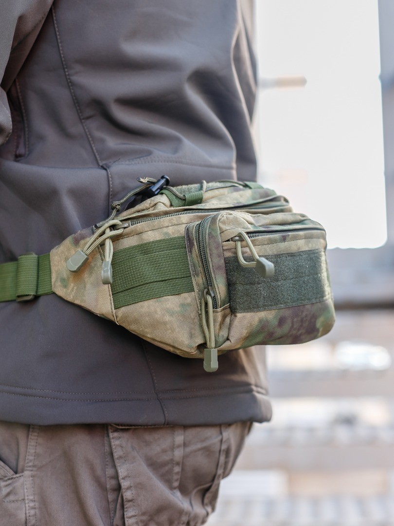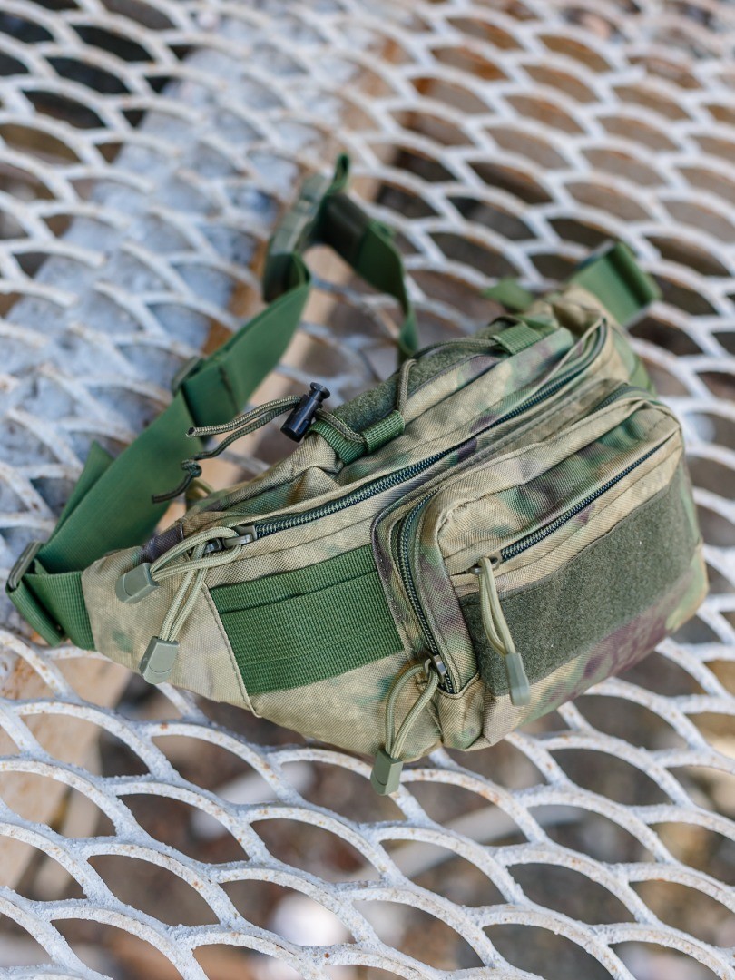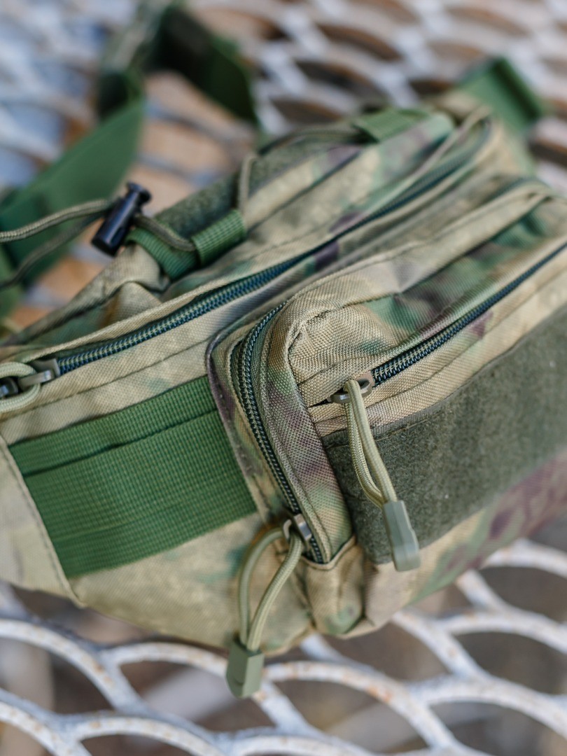 ✔Пояс съемный, поэтому сумку можно крепить на рюкзак, оснащенный системой Molle, как дополнительный подсумок. Спереди нашита панель velcro для патчей.