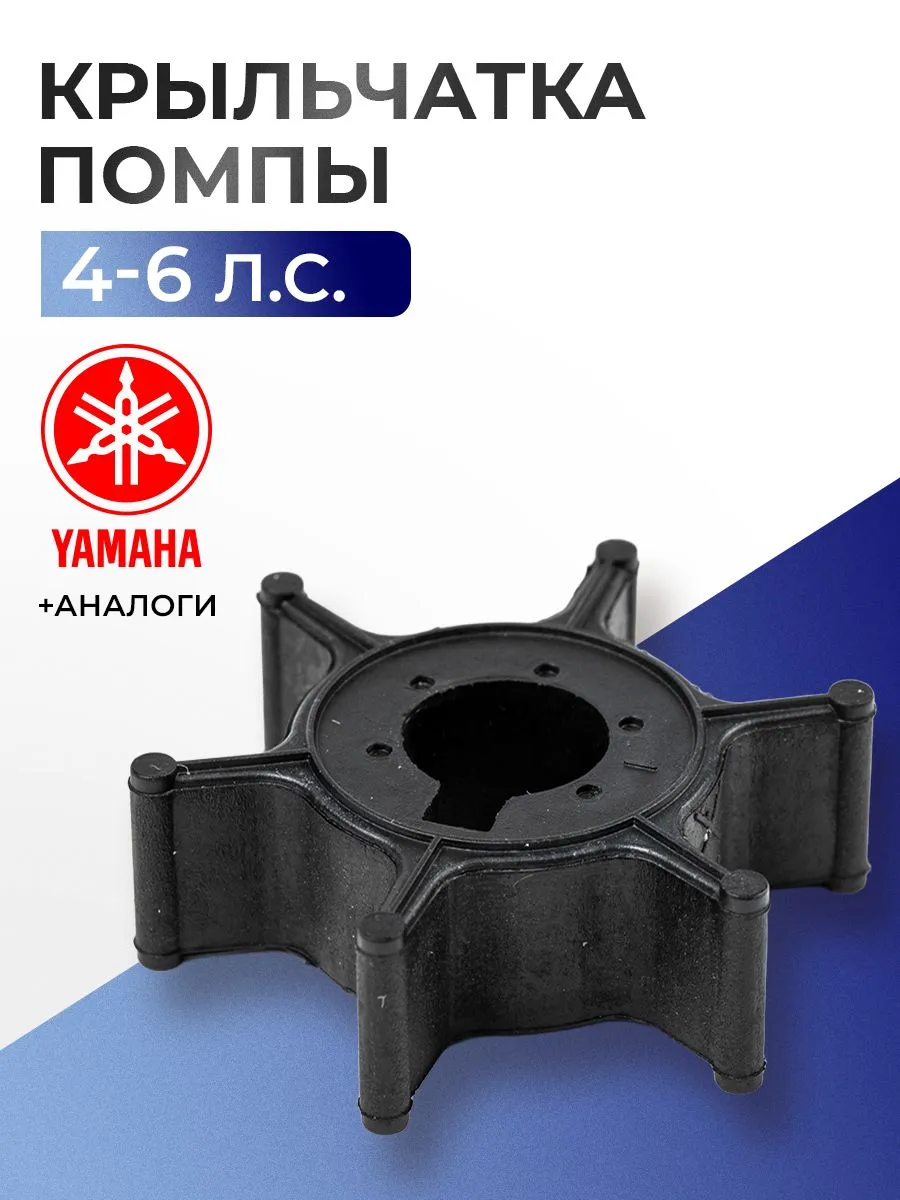 Запасная крыльчатка водяной помпы для лодочных моторов мощностью 4-6 л.с. Устройство обеспечивает эффективную циркуляцию охлаждающей жидкости в системе двигателя.