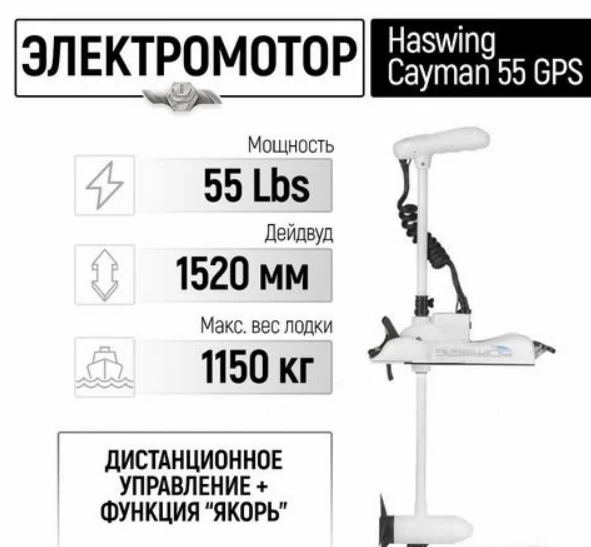 Электромотор лодочный Haswing Cayman B 55 lbs GPS New 152 см (постановка на якорь с пульта)