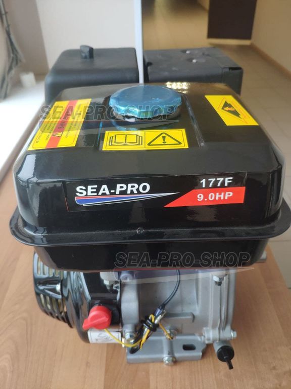 Подвесной лодочный мотор Sea-Pro SMF-6 болотоход оснащен 4-х тактным двигателем 6,5 л.с., объем 196 см3. Вес мотора 29 кг. Максимальные обороты двигателя достигают 3600 об/мин. Имеет румпельное управление, ручка газа на румпеле. Запуск двигателя производится вручную шнуром. Болотоход Си Про имеет 1 передачу - F (переднюю). Высота рекомендуемого транца 381 мм. Встроенный бак 3,6 л.