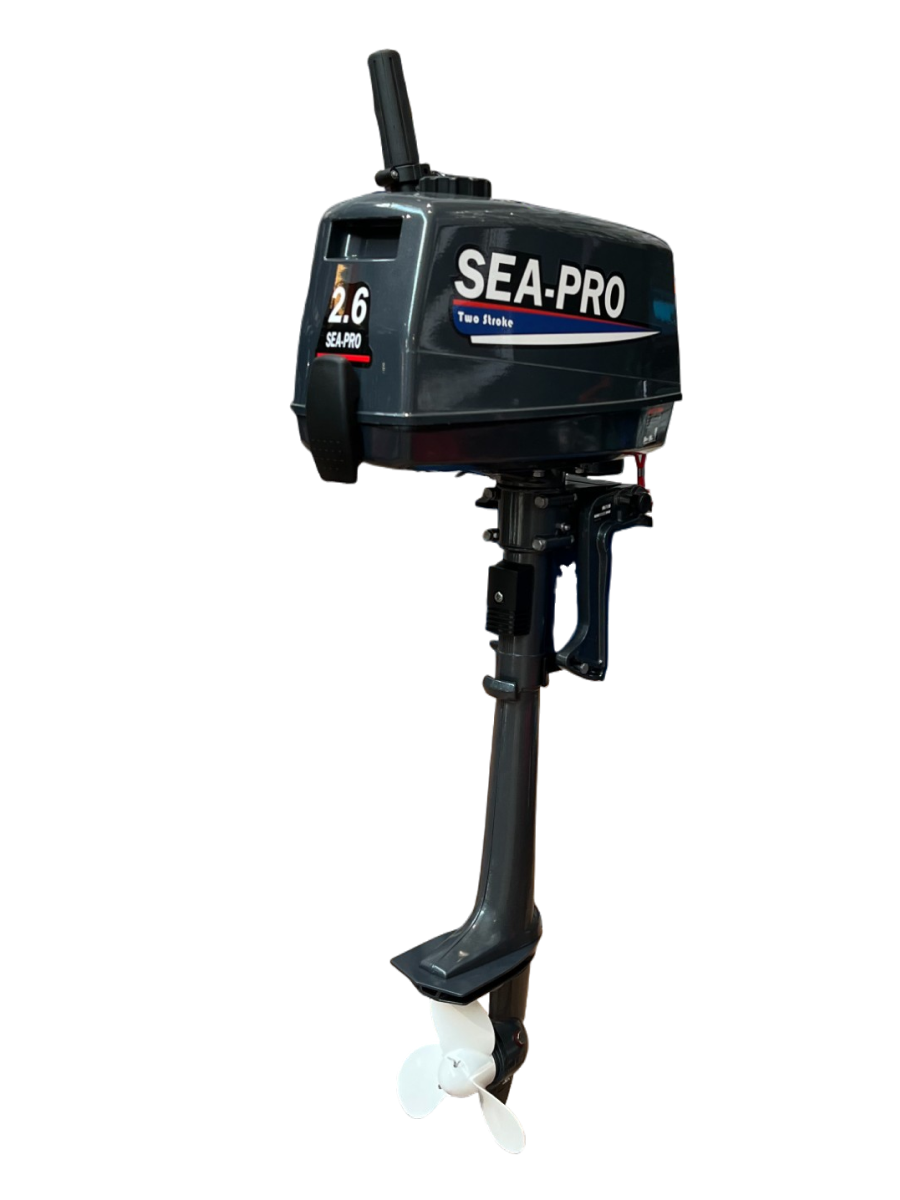 Лодочный мотор Sea-Pro Т 2.6S ― двухтактный одноцилиндровый мотор мощностью 2,6 л.с. с румпельным управлением, ручным переводом в мелководный режим, встроенным бензобаком на 1,2 литра, рассчитанный на стандартную высоту транца 381 мм.