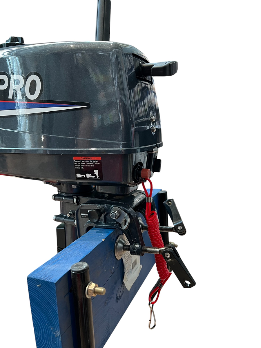 оборачивается на 180 градусов. Максимальные обороты двигателя достигают 5000 об/мин. Высота рекомендуемого транца 381 мм. Мотор Sea-Pro T2,65S имеет водяное охлаждение. Для безопасности предусмотрен трос с чекой аварийной остановки.