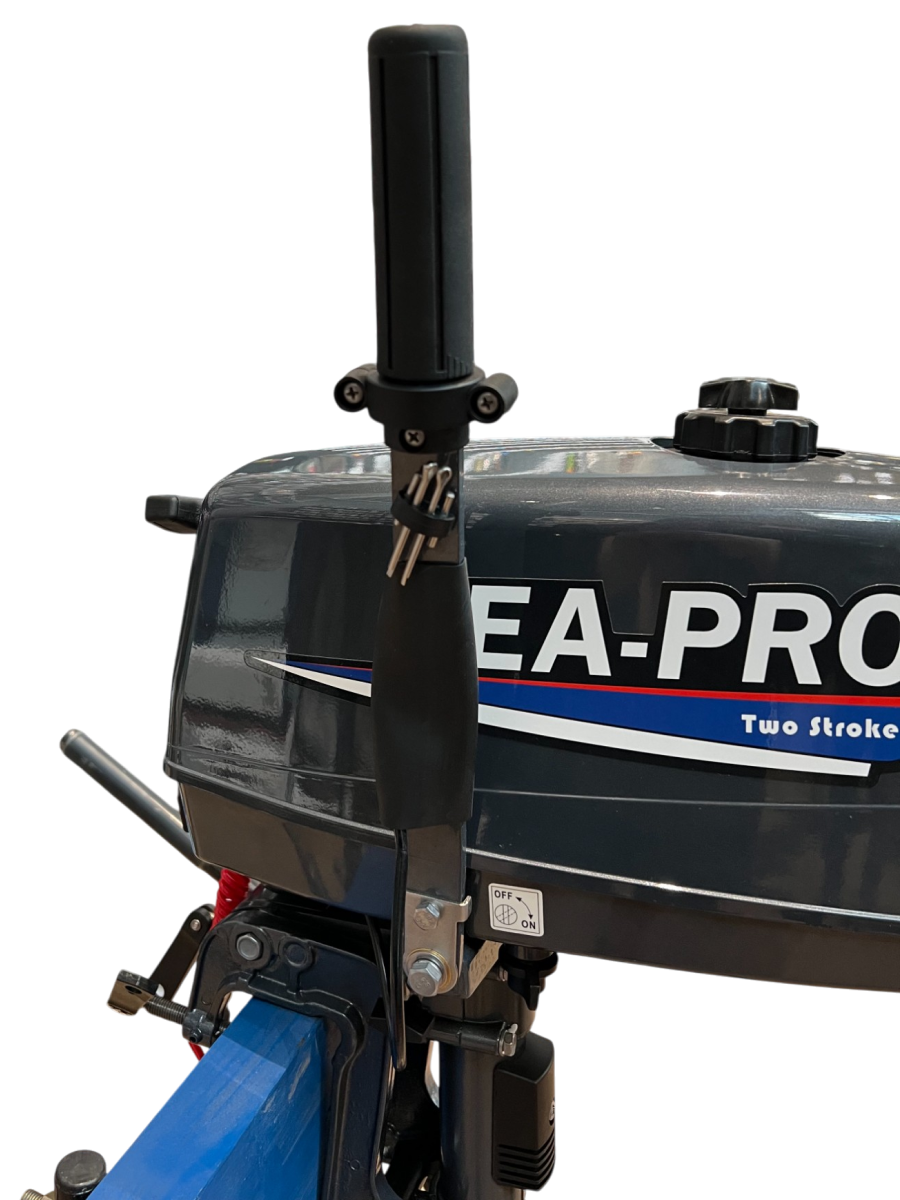 Sea-Pro T2.6S - этот 2-х тактный мотор появился в 2017 году на рынке. Его выгодное отличие от мотора 2.5 л.с. - это расположение управление газом на румпеле. Сиа Про Т2.6 уверенно себя чувствует на озерах и реках со слабым течением. Внутренний бак в 1.2 л, расход на холостом ходу около 0,2 л/ч, запас хода от 3 до 5 часов.