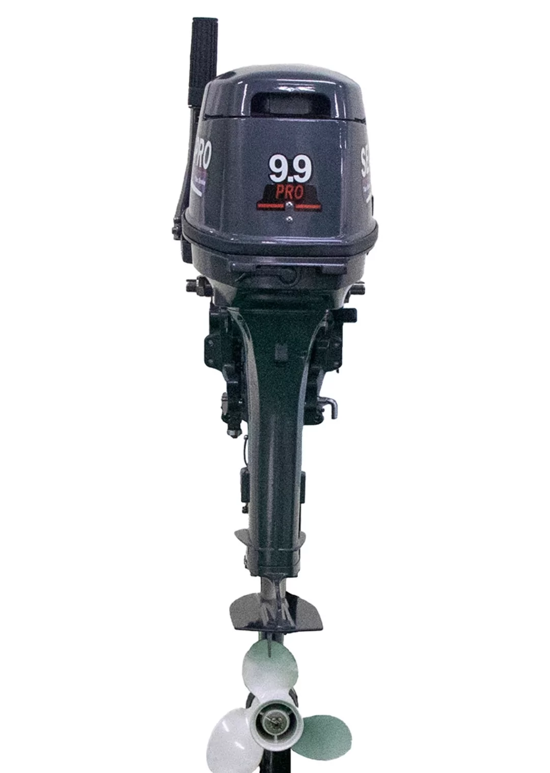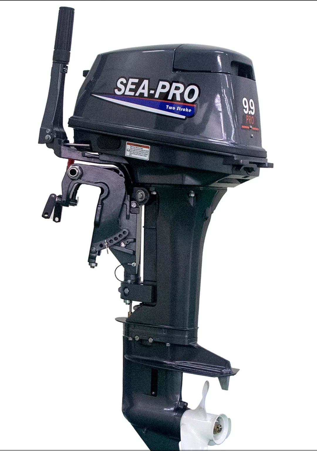 С объемом двигателя 294 куб. см и весом 51 кг, двухтактный Sea-Pro T9.9 PRO оснащен румпельным управлением, что обеспечивает удобное управление с помощью ручки на румпеле. Запуск осуществляется вручную с помощью стартового шнура. Мотор имеет три передачи: переднюю, нейтраль и заднюю, а также режим для передвижения по мелководью. Для повышения безопасности предусмотрен трос аварийной остановки. Он предназначен для стандартной высоты транца 381 мм и комплектуется внешним топливным баком объемом 24 литра, с рекомендуемым топливом Аи-92.