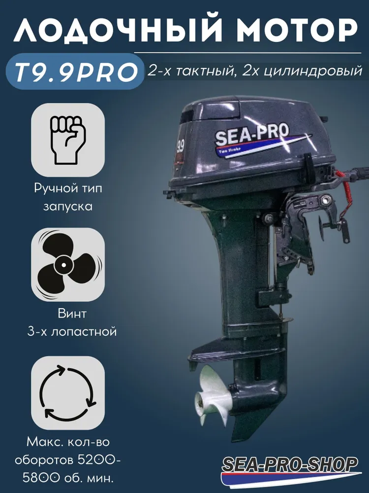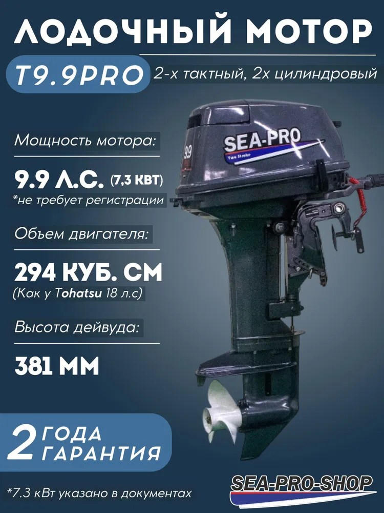 Лодочный мотор Sea-Pro T9.9 PRO — это новинка 2024 года с мощностью 9.9 л.с. (7.3 кВт), что позволяет избежать необходимости регистрации в ГИМС. Этот мотор является качественной альтернативой модели Tohatsu 18.