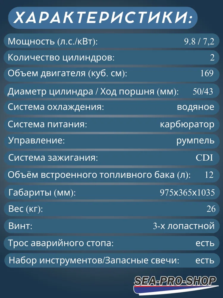 Лодочный мотор Sea-Pro T 9.8 S new — это новинка 2021 года с мощностью 9.8 л.с. и объемом двигателя 169 куб. см. С весом всего 26 кг, он является отличной альтернативой мотору Tohatsu M 9.8. Новый мотор отличается высоким качеством сборки, что подтверждается более чем пятью межоперационными тестами на заводе, включая обкатку мотоголовы, опрессовку двигателя и редуктора, проверку помпы, контроль биения валов и финальное тестирование в водных условиях.
