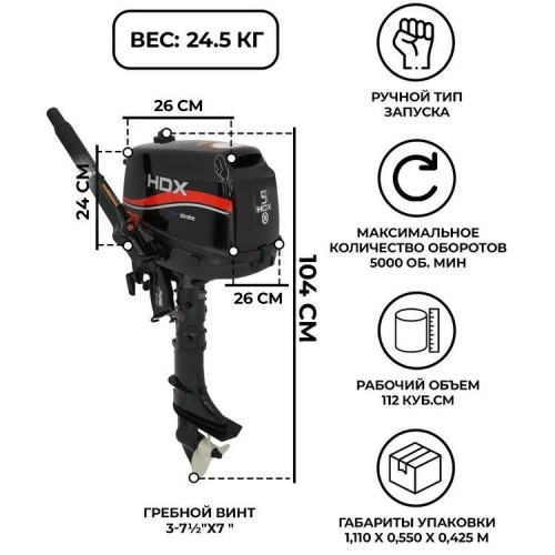 Характеристики товара: Лодочный мотор HDX F5 BMS
